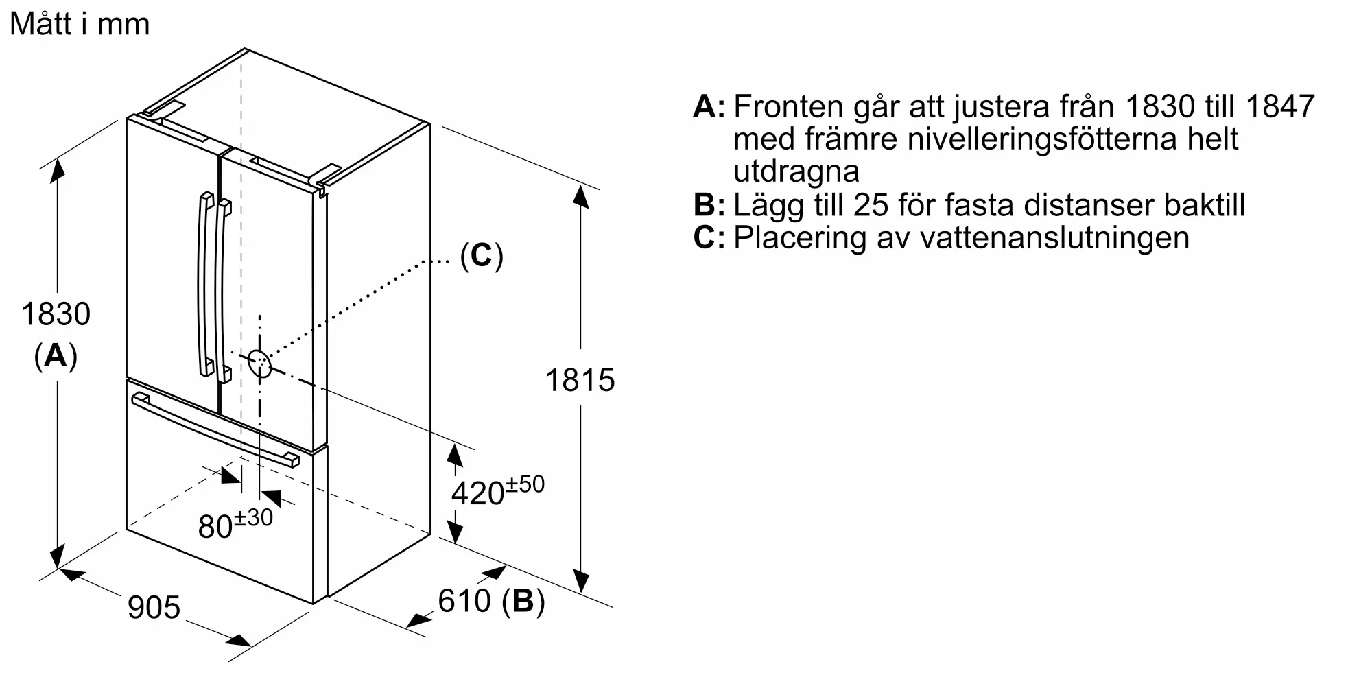 1830x905x706 mm