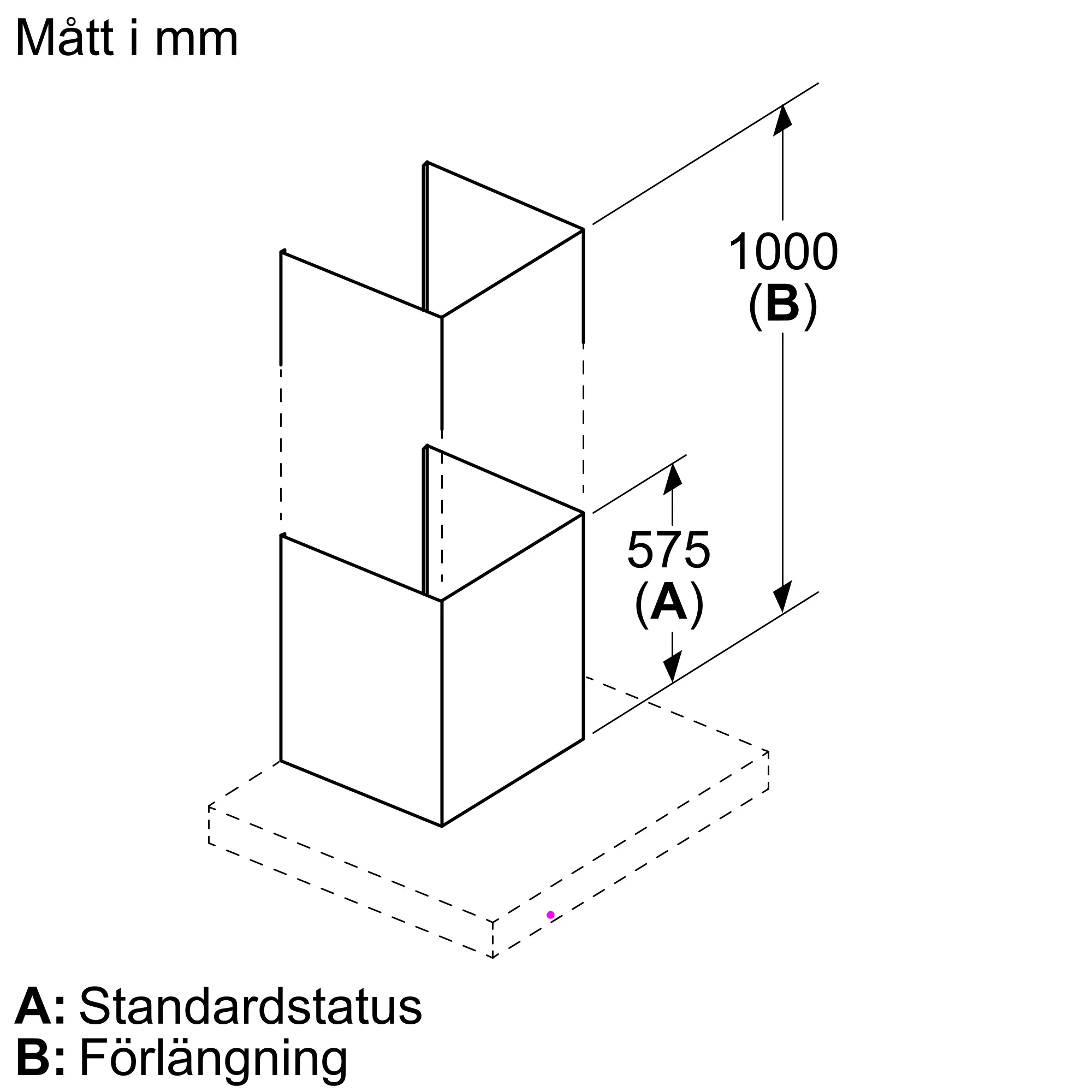 Förlängning 1000 mm (utan kolfilterspår) för väggmonterad skorstensfläkt