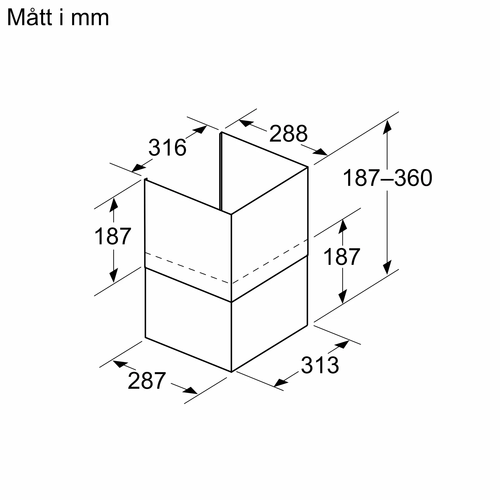 Skorstensförlängning 187-360 mm för integrerade fläktar