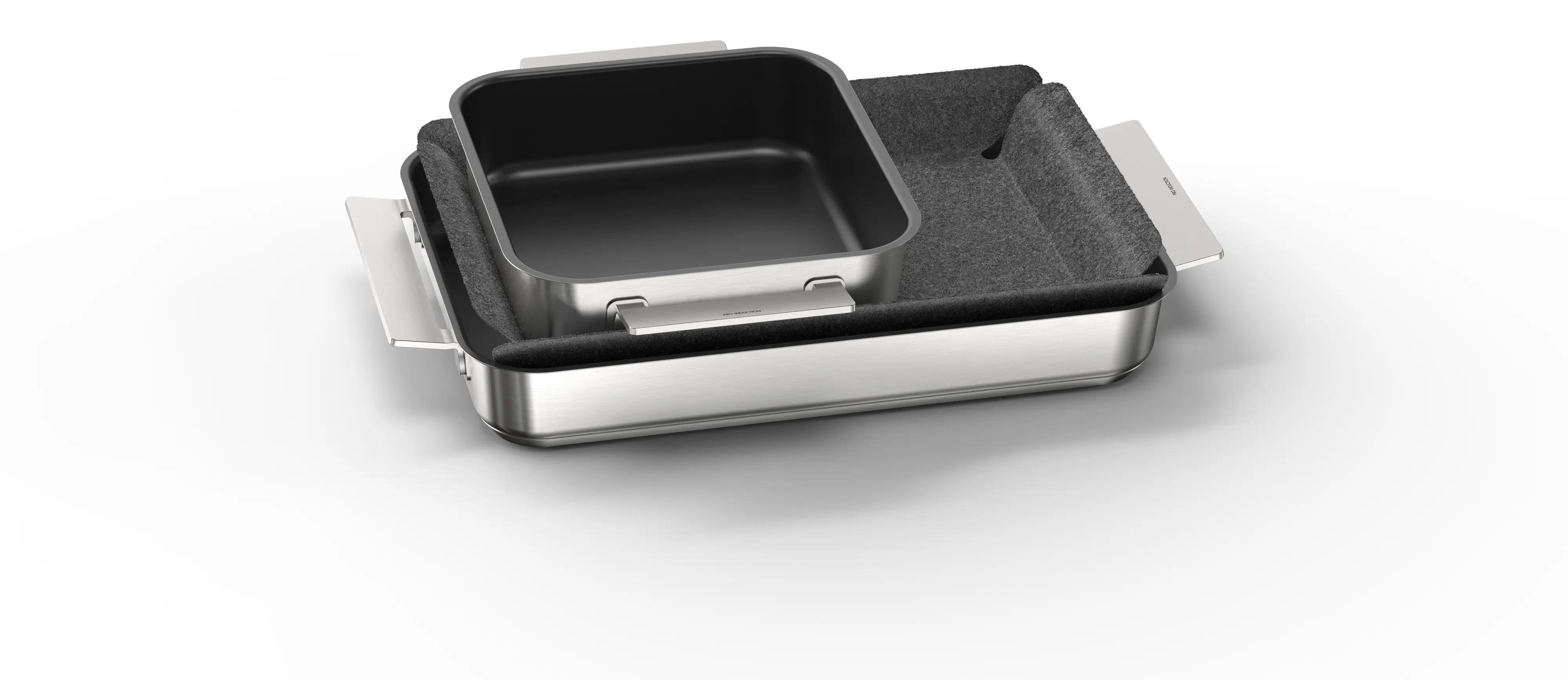 Inklusive skyddsfilt för att förhindra repor på pannorna vid förvaring